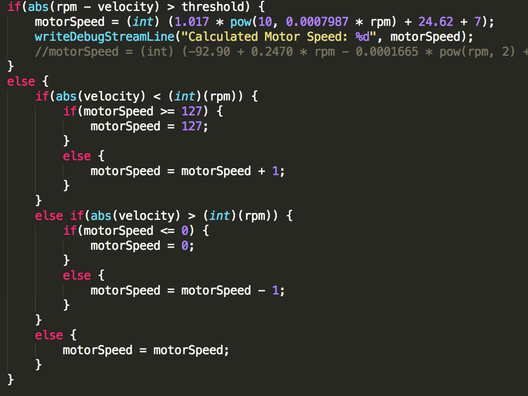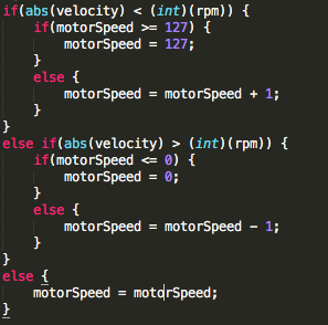 We then came up with another solution: have to microcontroller adjust the motor power until the actual omega was the same as desired omega. So we did just that: