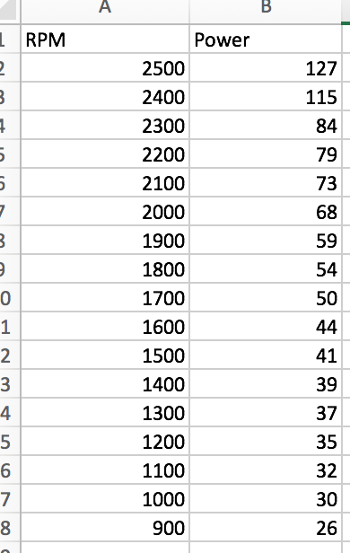 Power VS RPM data Points Power Vs. RPM Curve Fit